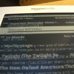 Pour certains livres, vous pourrez utiliser la technologie « text-to-speech », en gros, votre kindle va vous lire votre livre/magazine, étant donné que ce kindle n’est pas traduit en français, l’accent anglais sur un livre français est plutôt incompréhensible. Dommage ! Car pour les journaux comme Le Monde sa peut être sympa comme fonctionnalité.